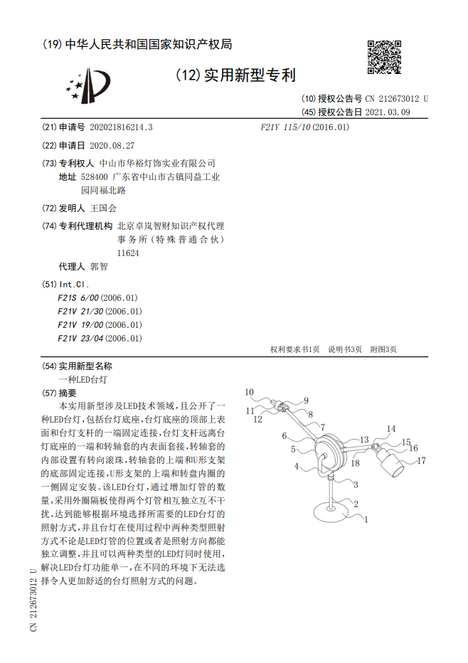 一種LED臺燈