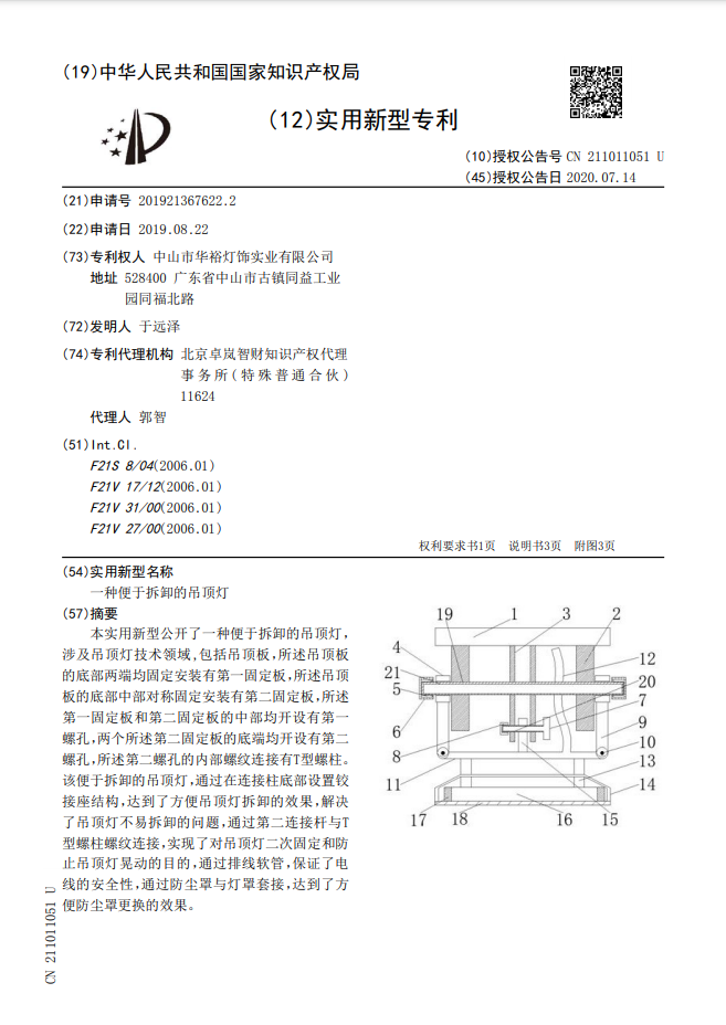 一種便于拆卸的吊頂燈